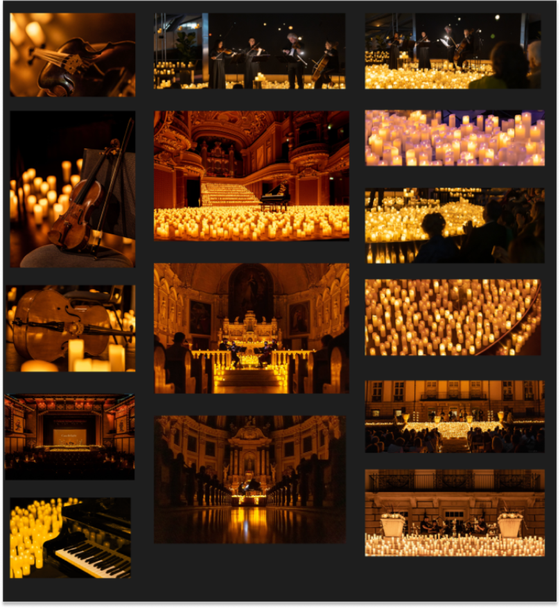 Taking a step back, I considered what we wanted the user to feel. We wanted to embody the experience of the candlelight concerts within our design, so I started to abstract the identity of the event. I encouranged my team to look at new precedents that embodied the musicality of the event and to find posters that had a good grasp of what it means to visualize a concept.