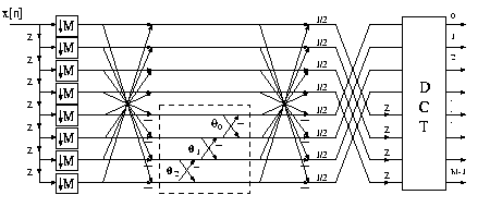 Fig. 1 shows the structure of the type-II fast orthogonal TDLT, which is very similar to Dr. Malvar's type-I fast lapped orthogonal transform (LOT-I).