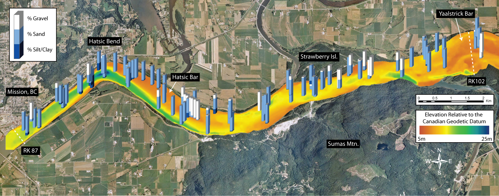 Gravel-sand transition reach in the Fraser River near Mission, British Columbia. Click on image for a higer resolution version.
