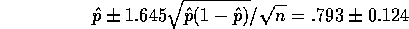 which is, as the text warns, quite wide. The sample size is not terribly large and you might worry about the normal approximation but for a rough idea the normal approximation is ok.