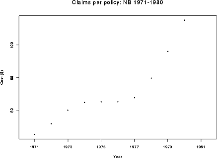 We consider data on average claims paid per policy for automobile insurance in New Brunswick in the years 1971-1980: