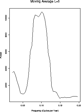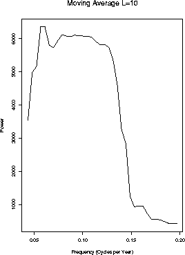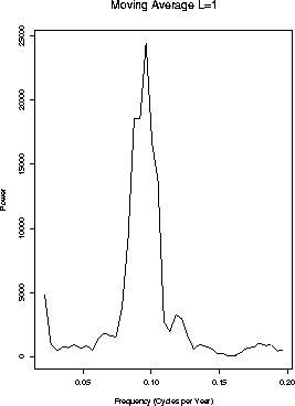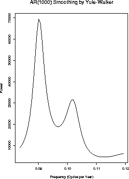 - The raw periodogram. Are there two peaks near a period of 10 years?