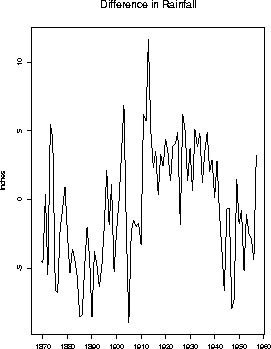 # Time series x is the difference between two rain fall series