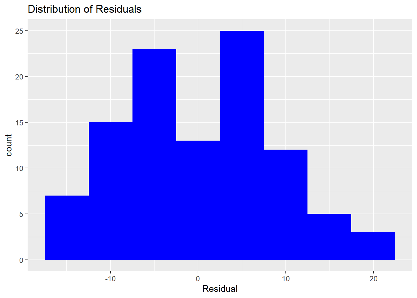 How do we know if a regression model is bogus? Recall that an important assumption of the linear regression model is that the errors (residuals) are normally distributed. That means some of the residuals are positive, some are negative, but most are small and close to zero. The easiest way to assess whether the residuals are normal is to plot them in a histogram or boxplot.