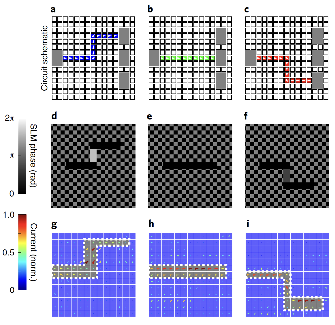 Dynamic control over the conduction band electrons of a semiconductor is a central technological pursuit. Beyond electronic circuitry, flexible control over the spatial and temporal character of semiconductor currents enables precise spatiotemporal structuring of magnetic fields. Despite their importance in science and technology, the control of magnetic fields at the micrometre spatial scale and femtosecond temporal scale using conventional electromagnets remains challenging. Here, we apply structured light beams to interfering photoexcitation pathways in gallium arsenide to sculpt the spatial and momentum configuration of its conduction band population. Programmable control over several hundred micrometre-scale current elements is achieved by manipulating the wavefronts of an optical beam using a spatial light modulator, enabling vast flexibility in the excited current patterns. Using this platform, we demonstrate dynamic optoelectronic interconnects, circuits for spatially tailored magnetic fields and magnetic field lattices.