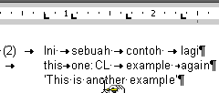 A special typographical challenge that linguists face is the formatting of our beloved example sentences with interlinear glossing. The problem is to make the words in the original example line up with the gloss, whether the example word or the gloss word is longer. I will present three solutions to this problem, from worst to best. (See Numbering for how to insert example numbers.)