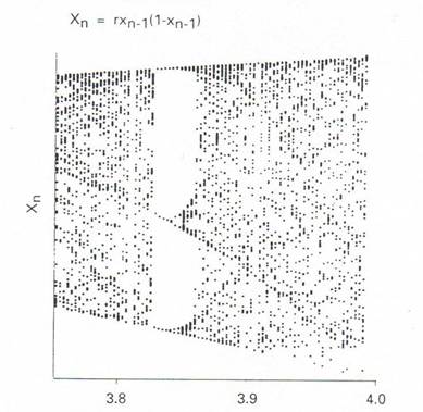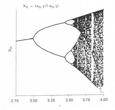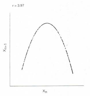 logistic equation, Xn=r(Xn-1)(1-Xn-1). It can
