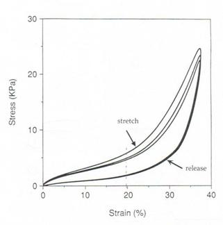 5: Stress-Strain curve for three cycles of stretch and release performed on
