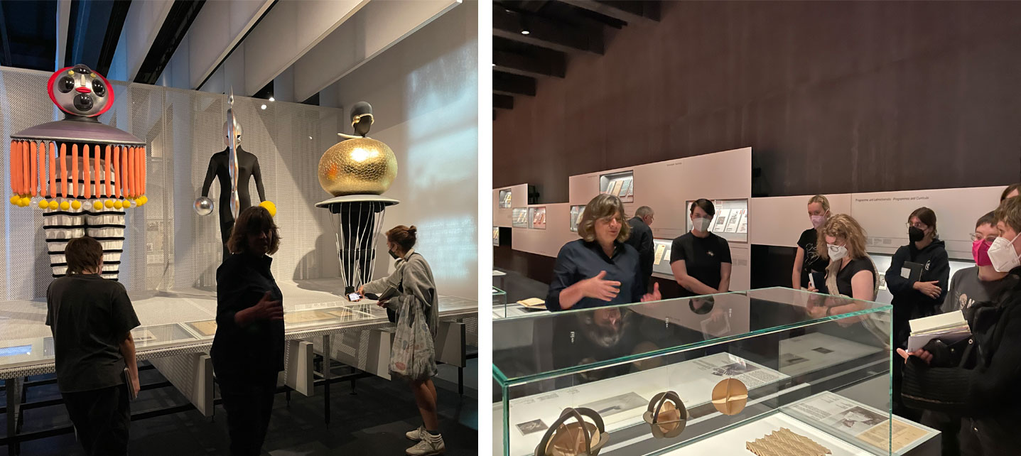 The field school students took an exciting day trip to Dessau, about 2 hours away from Berlin. As a main part of their visit, they joined a personal tour at the Bauhaus Museum Dessau with Regina Bittner, head of the Academy and Deputy Director of the Bauhaus Dessau Foundation. Bittner provided detailed information about the significance of the Bauhaus, its history and lasting influence as a school and institute for art, architecture and design, a s well as about the people who shaped the school and its infrastructure.