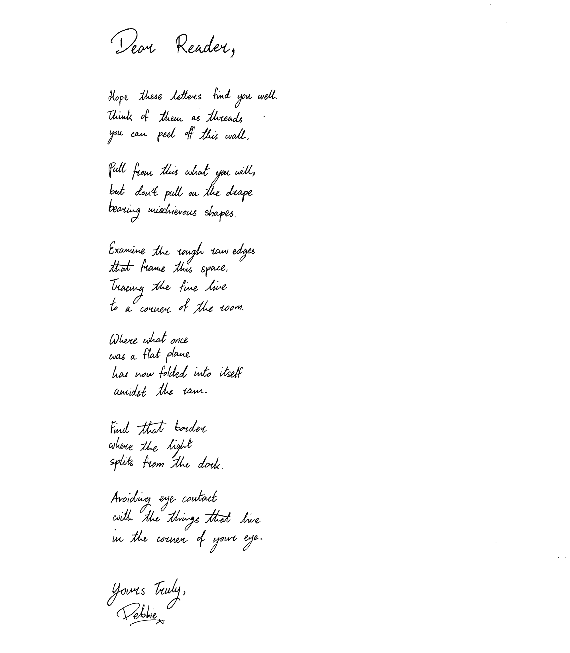 The unraveling image untwines the weave of a fixed reality. It does not cut this fabric, as it is like water and will engulf those who try to slice it apart. Already half submerged, barely breathing, and fearing the moment when our lungs could fill with stifling fluid, we struggle to keep afloat in these streams and channels where we unconsciously dwell. The unravelling image implores us to consider the gaps in this existing infrastructure, to examine its weave, to find a loose thread and tug it, pull it, piece by piece. The unravelling image prompts us to prod at the fabrics of these narratives into which we are sewn. It frees us, helping to visualize the existing dominant narratives. Through it, we find plot holes and reformat fixed fabrications, dissolving language that was once carved into stone, and we begin to rewrite the narratives that have dominated us.