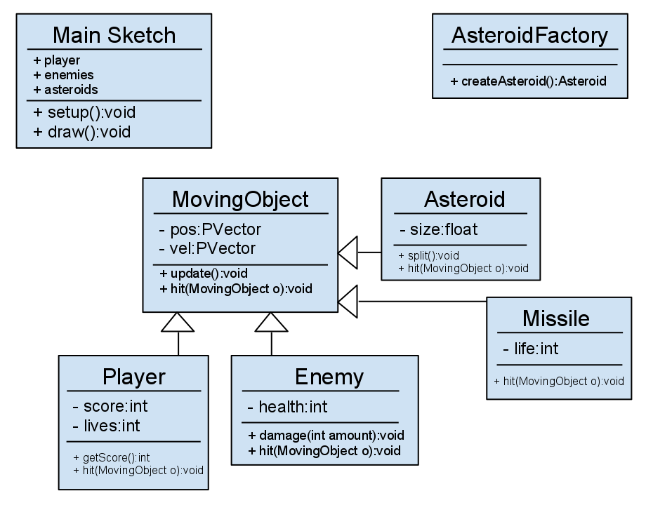 Everyone should be familiar with the game Asteroids, but how would one go about coding it? Let's take a look at the requirements. Not that this is a bit more complex than the example in the Inheritance PPT Slides.