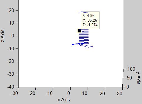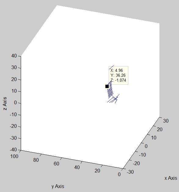 Clockwise from top Left, all four images display the 3d plot generated from the obtained points for test capture 1. Please note the x,y,z marker in the images, Using which it can be said that distance to duct tape is approximately 36 cm, percentage difference from actual = 20%, width of duct tape = 10.12 - 4.96 = 5.16 cm, percentage difference = 7.5%. These errors are easily rectifiable by adjusting the horizontal difference between the position of the two image captures. |