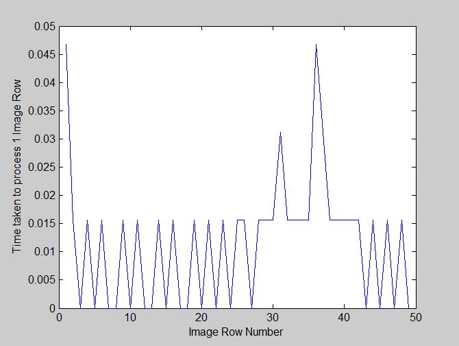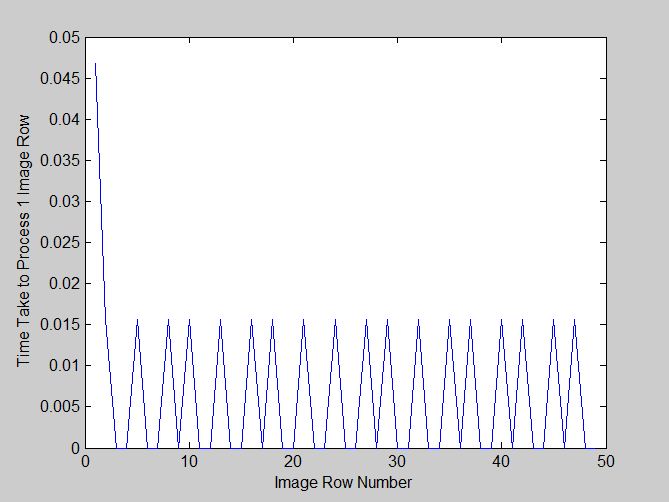 Above: image on left shows the time taken to process image rows for test capture 1, on right is time taken for test capture 2. The values are going to 0 as rows are skipped to process the image faster. |
