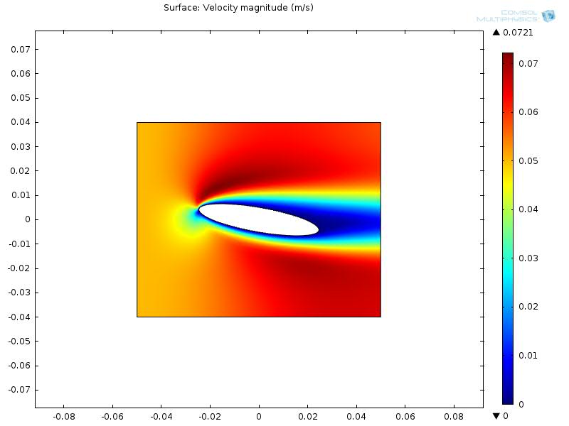 Project for simulated study of effect of parameters such as velocity, aspect ratio, and attack angle, on the drag and lift forces for an elliptical cylinder using ComSol.