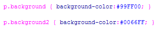 The class selector precedes with a dot, it allows you to create different styles within the same html element. For example, here we want two paragraph tag to have different color(you can use inline style to achieve the same effect, but class selector will allow you to make changes without modifying the original HTML tag); first, we define two class selector for P tag.