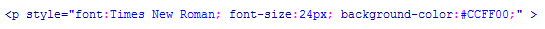 In this chart, we select P tag and define the content(which is text) in all the paragraph will be red and the background will be blue.