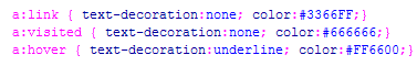a:hover - it sets the color and text decoration when user hover his mouse over the link;