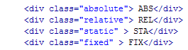 Then apply to four different DIV, preview in the browser and you will see the difference(you should make a really long page so you can test fixed position as scrolling).