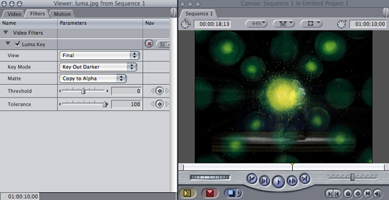 3. Play with attributes/options in the Luma Key filter until you get your desired lighting effect.