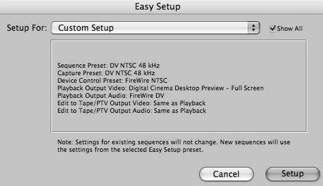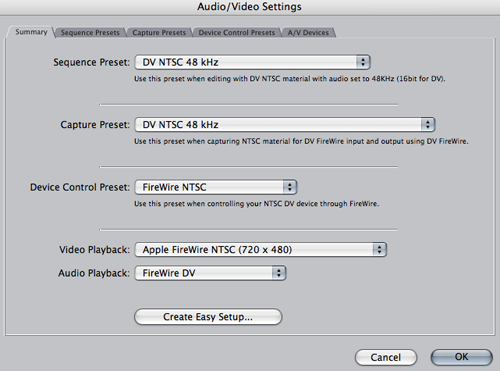 For more detail setting, go to Final Cut Pro menu>> Video and Audio Setting