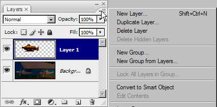 3. Click at the top-right of layer palette, there are several layer options you can apply such as add a new blank layer, duplicate current layer and etc.