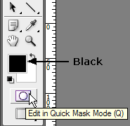 1. Click the quick mask icon (or keyboard shortcut Q) on tool box to turn on the Quick Mask mode. Make sure your selected color is black.