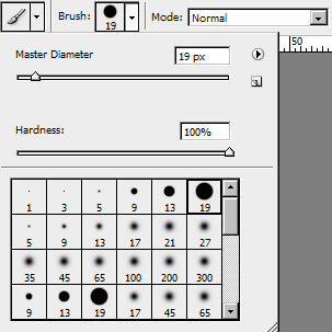 2. Select the Brush tool and set a reasonable brush size to paint the submarine. Make sure you set the Hardness of the brush to 100%.