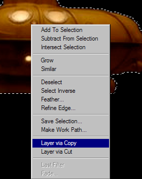 1. Choose any selection tools (magic wand, lasso, marquee), hover over the selected area, right click then select layer via cut or copy.