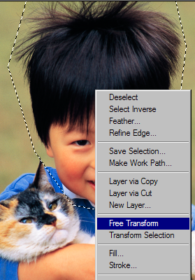 2. Right click on the selection(or Ctrl + T) and select Free Transform