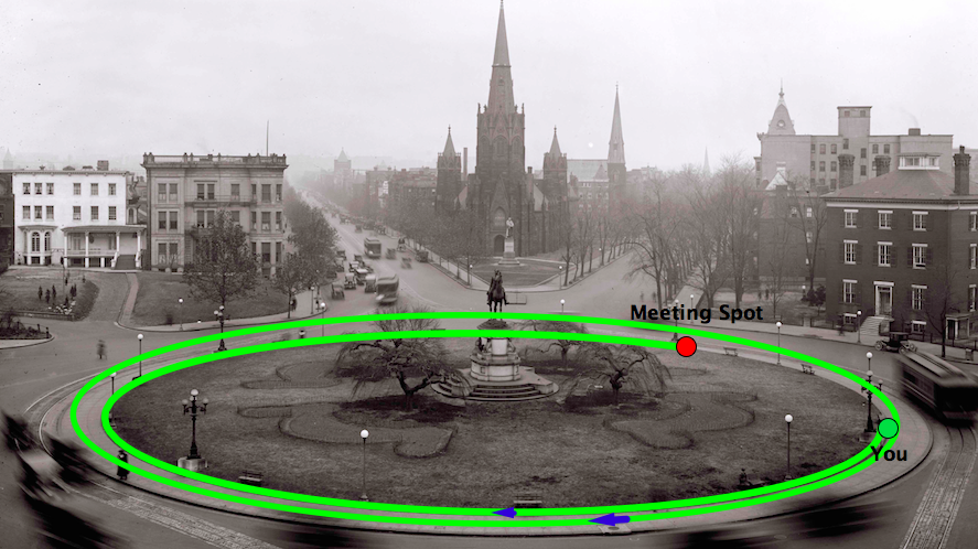 Observation: There are multiple ways of going from one point on the circle to another point on the circle, while staying on the circle all the time.