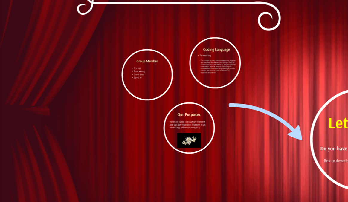 The purpose of these applets is to allow the viewer to interact and understand the concept of Ramsey's theorem and van der Waerden's theorem and enable the viewer to check them in a more visual, creative way.