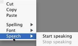 Uses Apple’s Text-to-Speech technology to speak the selected text. To select the voice and speed of the spoken text, open System Preferences and click Speech.
